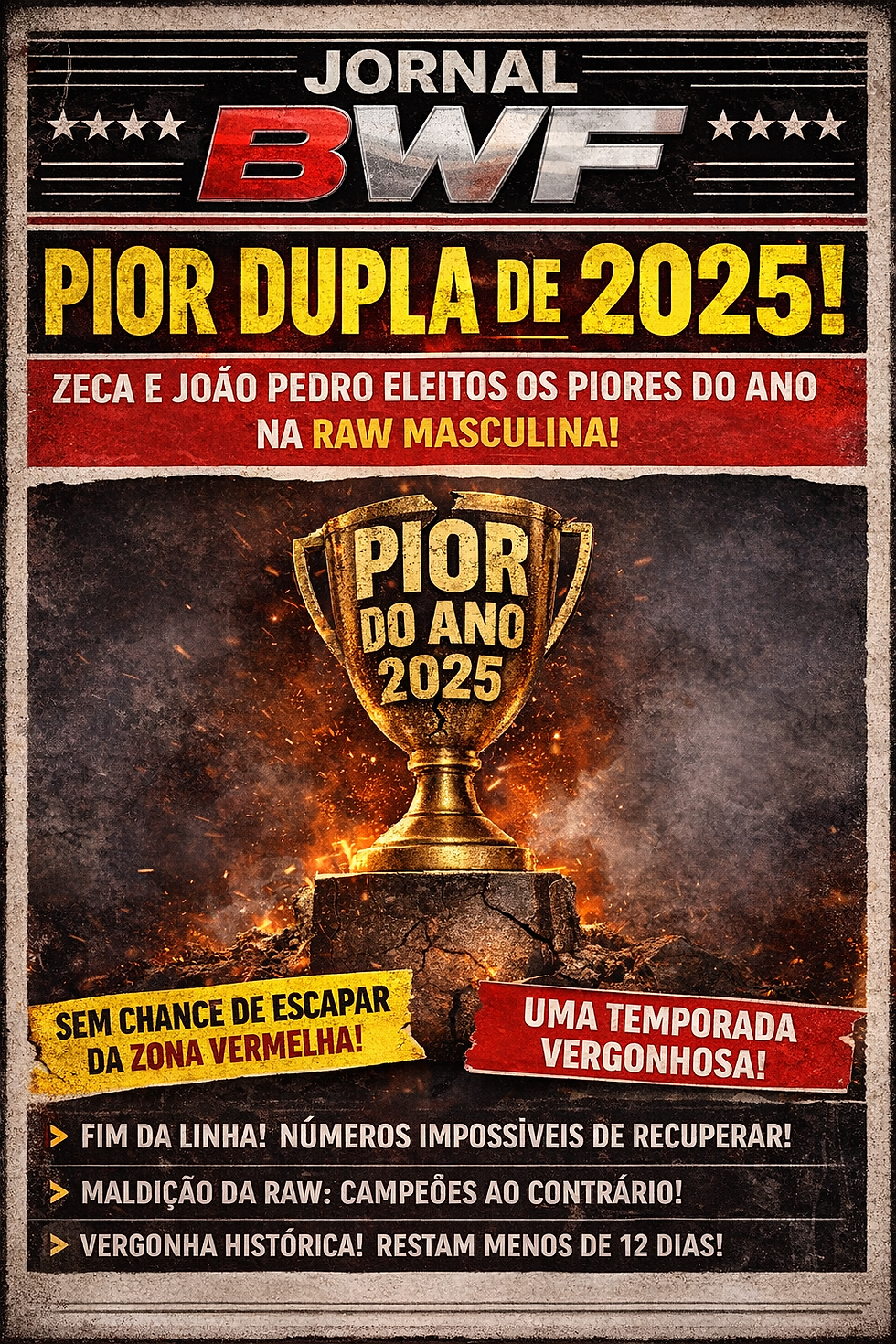 ZONA VERMELHA DEFINIDA NA RAW: ZECA E JOÃO PEDRO SÃO MATEMATICAMENTE OS PIORES DO ANO DE 2025